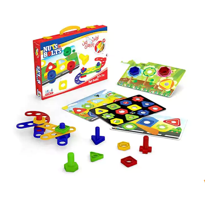 بازی فکری اولین بازی های من مخصوص کودکان طراحی شده تا آنها بتوانند همزمان سرگرم شوند و مهارتهای ذهنی و حرکتی خود را تقویت کنند. این مجموعه شامل قطعات رنگارنگ و با کیفیت، صفحات مقوایی با اشکال مختلف و ابزارهای اتصال مثل پیچ و مهره و اتصالات است که کودک میتواند آنها را به هم وصل کند و سازههای مختلف بسازد.