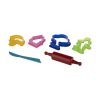 - اقلام همراه: وردنه برای پهن کردن خمیر - قالب - خمیر بازی در ۶ رنگ - کاردک - سفره