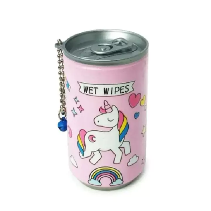 دستمال مرطوب یکی از ابزار های بهداشت و نظافت است که برای امور متعددی قابل استفاده می باشد. این محصول یکی از محصولات بهداشتی پر کاربرد در طول سفر و بیرون از منزل برای نظافت می باشد. محصول فوق نمونه ای از دستمال مرطوب فانتزی با ابعاد کوچک می باشد که علاوه بر طراحی فانتزی و زیبا دارای ابعاد بسیار فشرده ای است و در هر جایی می توانید همراه شما باشد. این دستمال قابل استفاده برای بزرگسالان میباشد و به راحتی داخل کیف جای می گیرد. قوطی دستمال مرطوب فوق دارای ابعاد 8.5x5x5 سانتی متر است و طراحی مانند قوطی نوشابه دارد. این محصول دارای 30 عدد دستمال مرطوب 13×7 سانتی متر از جنس ریون است.