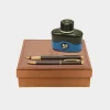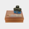 ست خودکار و خودنویس با شیشه جوهر خودنویس گیره و قطعات قلم ها با طلا آبکاری شده است.