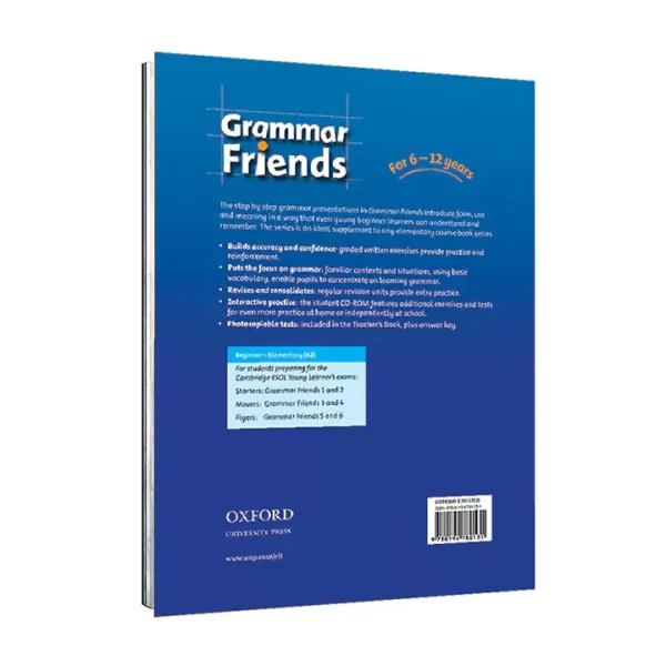 کتاب Grammar Friends 1 یکی از پرمحتواترین و بهترین منابع برای آموزش دستور زبان انگلیسی میباشد که توسط آیلین فلانیگان تألیف و ارائه شده است. این کتاب اولین جلد از سری کتابهای آموزش دستور زبان Grammar Friends میباشد. این مجموعه که توسط انتشارات آکسفورد منتشر شده است، شامل شش سطح پیشرفته Grammar Friends 1,2,3,4,5,6 میباشد و به همراه فایل صوتی ارائه میگردد. کتابهای شماره 1 تا 4 این مجموعه از 15 درس تشکیل شدهاند و کتابهای شماره 5 و 6 نیز هرکدام دارای 12 درس میباشند. هر درس ارائه شده در یک کتاب 4 صفحه دارد و حاوی موضوعات گرامری و کاربردی به همراه تمرینهای متنوع و پاسخهای آنها میباشند که درصدد آموزش مهارتهای گرامری و دستور زبان انگلیسی به شیوهای جذاب میباشد.